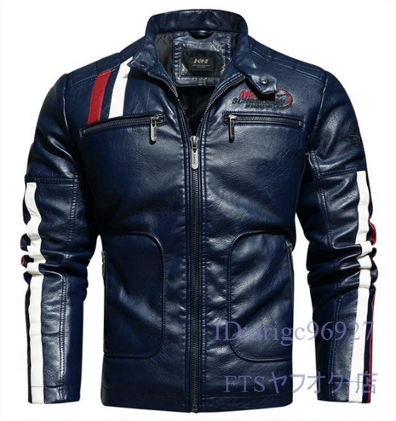 > T873☆新品ライダースジャケット メンズ 中綿ジャケット トレンド ブルゾン コート カジュアル バイクウエア ブルー S