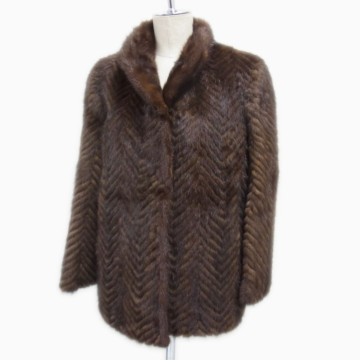 - 美品 高級毛皮 国産品◇岐阜毛被KK シェブロンカット ミンクコート ダークブラウン MINK FUR 毛艶 毛並 皮質 良好 11号 レディース