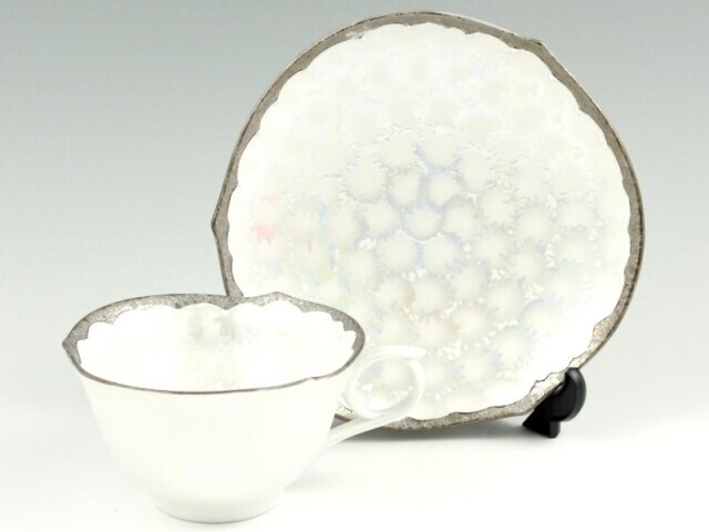 - SA有田焼! ☆プラチナ松葉吹ラスターシルバー・コーヒー碗皿 19075☆ 新品 紅茶 ミルク ラテ カプチーノ エスプレッソ 茶器 ギフト