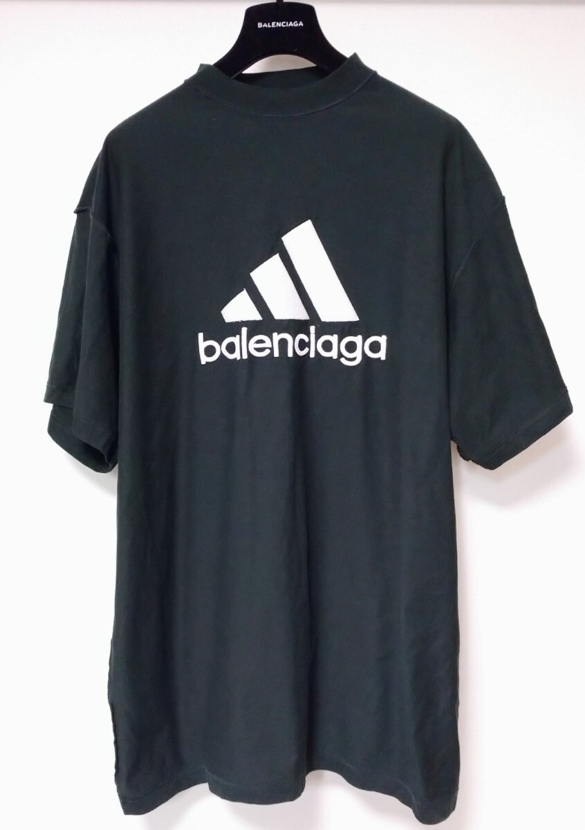 - 新品 バレンシアガ×アディダス 半袖カットソー ロゴ刺繍 ダークグリーン 1