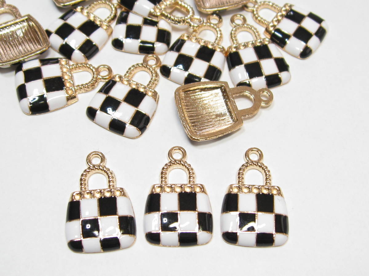 - 市松模様 チェック柄 格子柄 バッグ チャーム パーツ 20個!