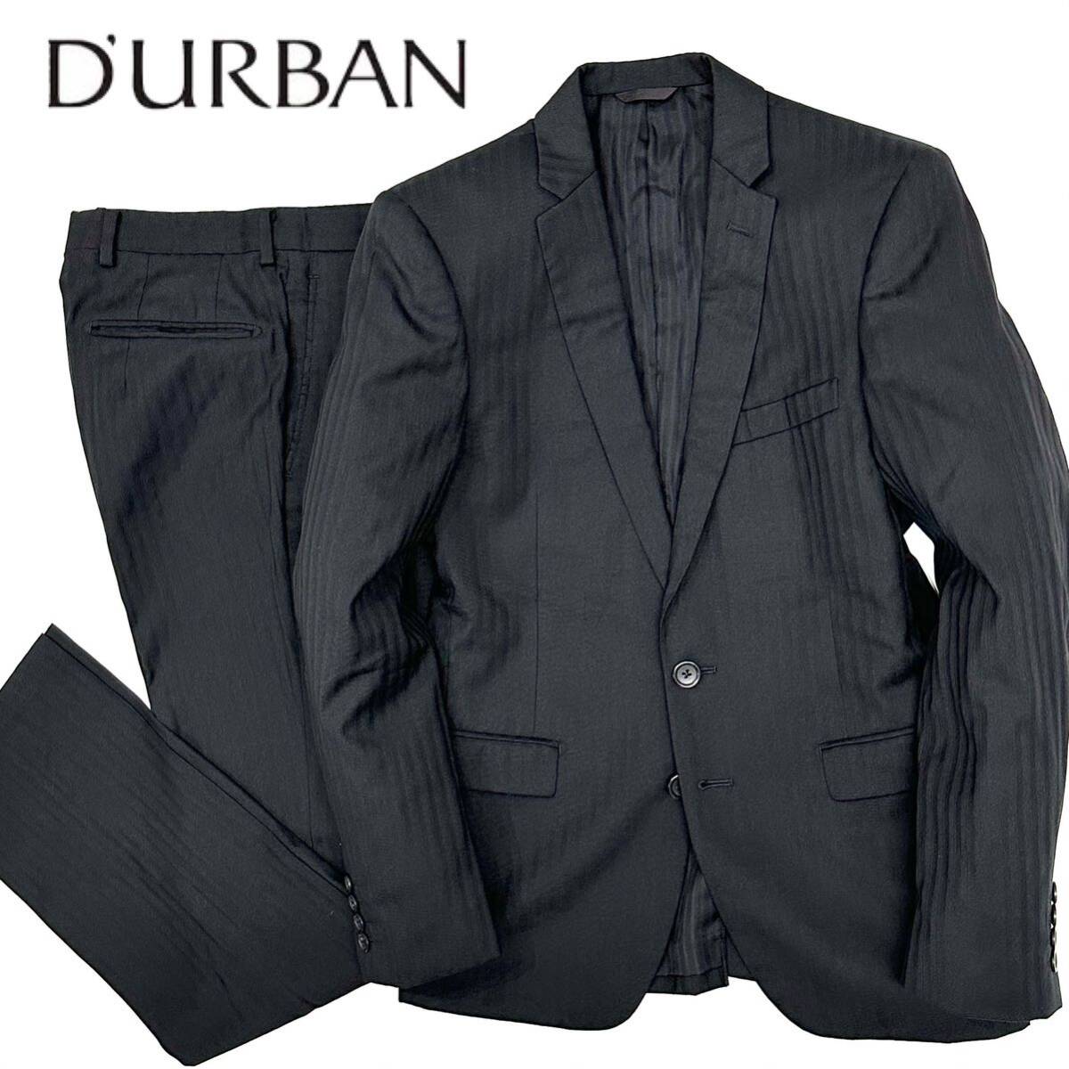 > D'URBAN ombrare ウール シルク 2B スリム 光沢 ストライプ シングルスーツ(44)ブラック メンズ 紳士服 ダーバン 日本製