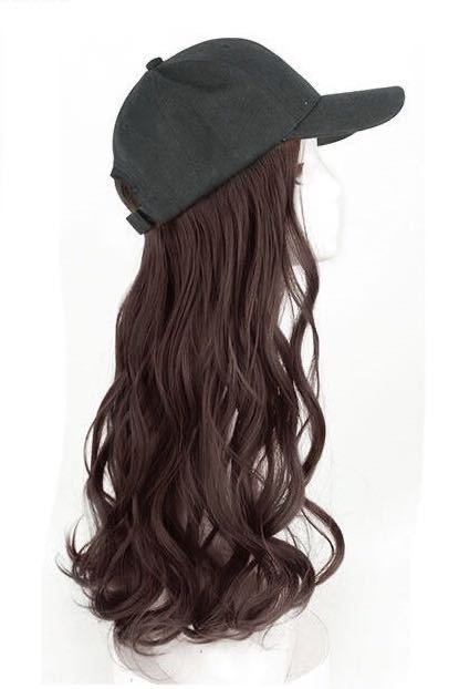 - 帽子ウィッグ レディース キャップ ゆるふわ ロングカール イメージチェンジ 高耐熱 キャップ付きロングウィッグ ダークブラウン