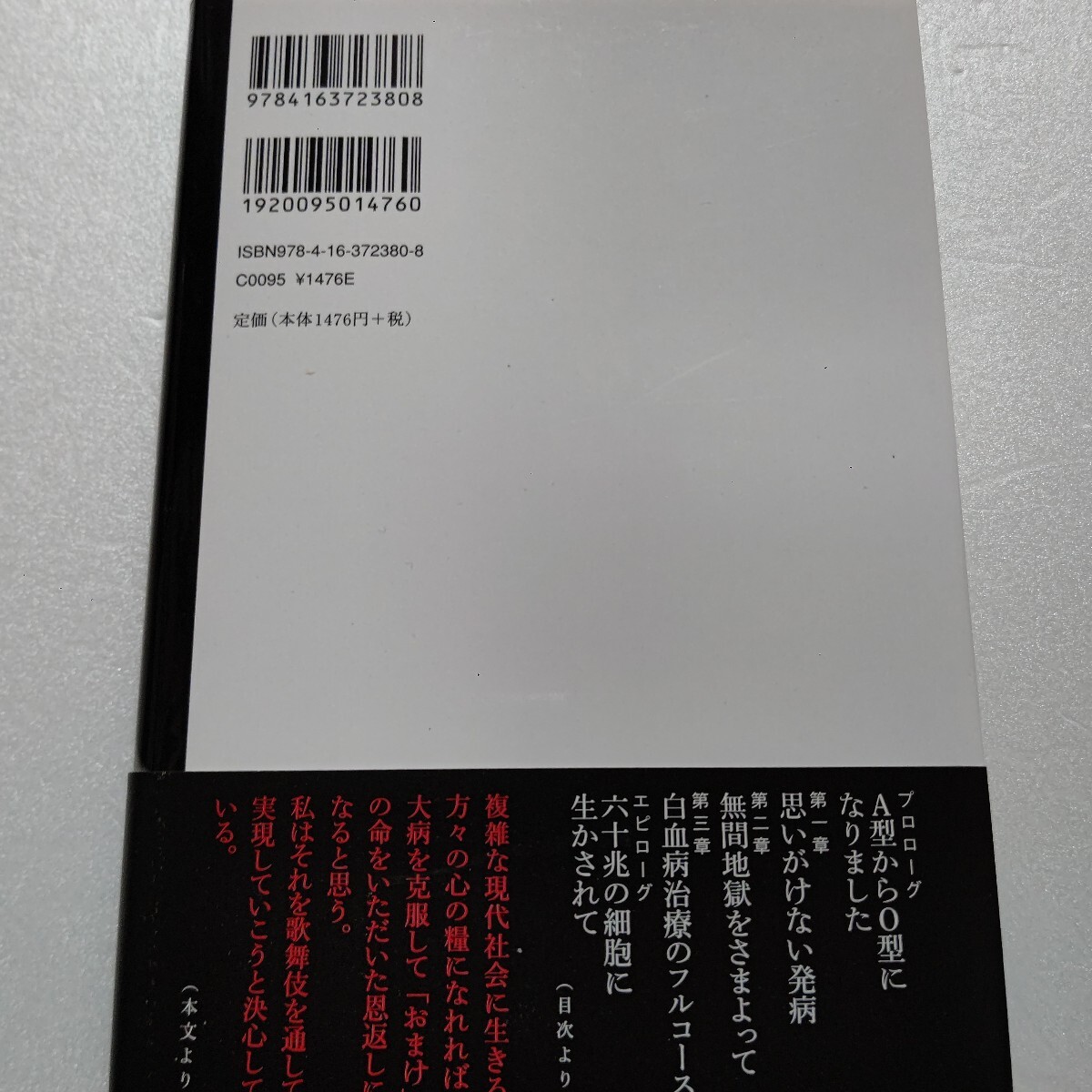 > ・團十郎復活 六十兆の細胞に生かされて 発病・再発・造血幹細胞移植―悲願の舞台復帰へ自ら綴った壮絶な闘病の記録。市川海老蔵 団十郎他