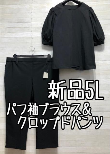 - 新品☆5L黒系♪ボリューム袖フェミニンブラウス&クロップドパンツ☆p139
