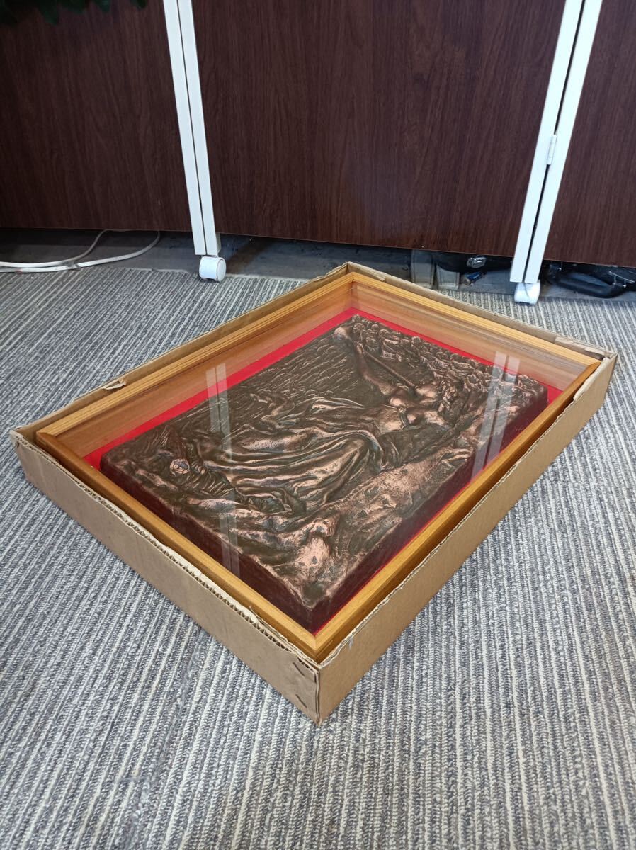 - [八4971] 〈美品〉銅板? 銅色のレリーフ 額縁寸法 600X450㎜ 厚さ70㎜