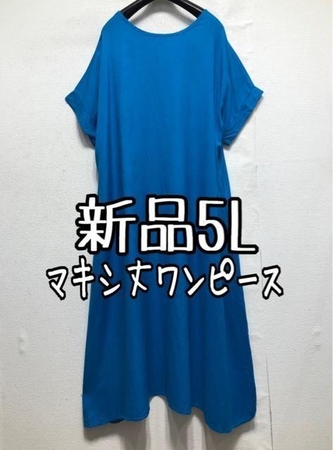 - 新品☆5Lブルー系♪シンプルゆったりロングワンピース♪☆a607