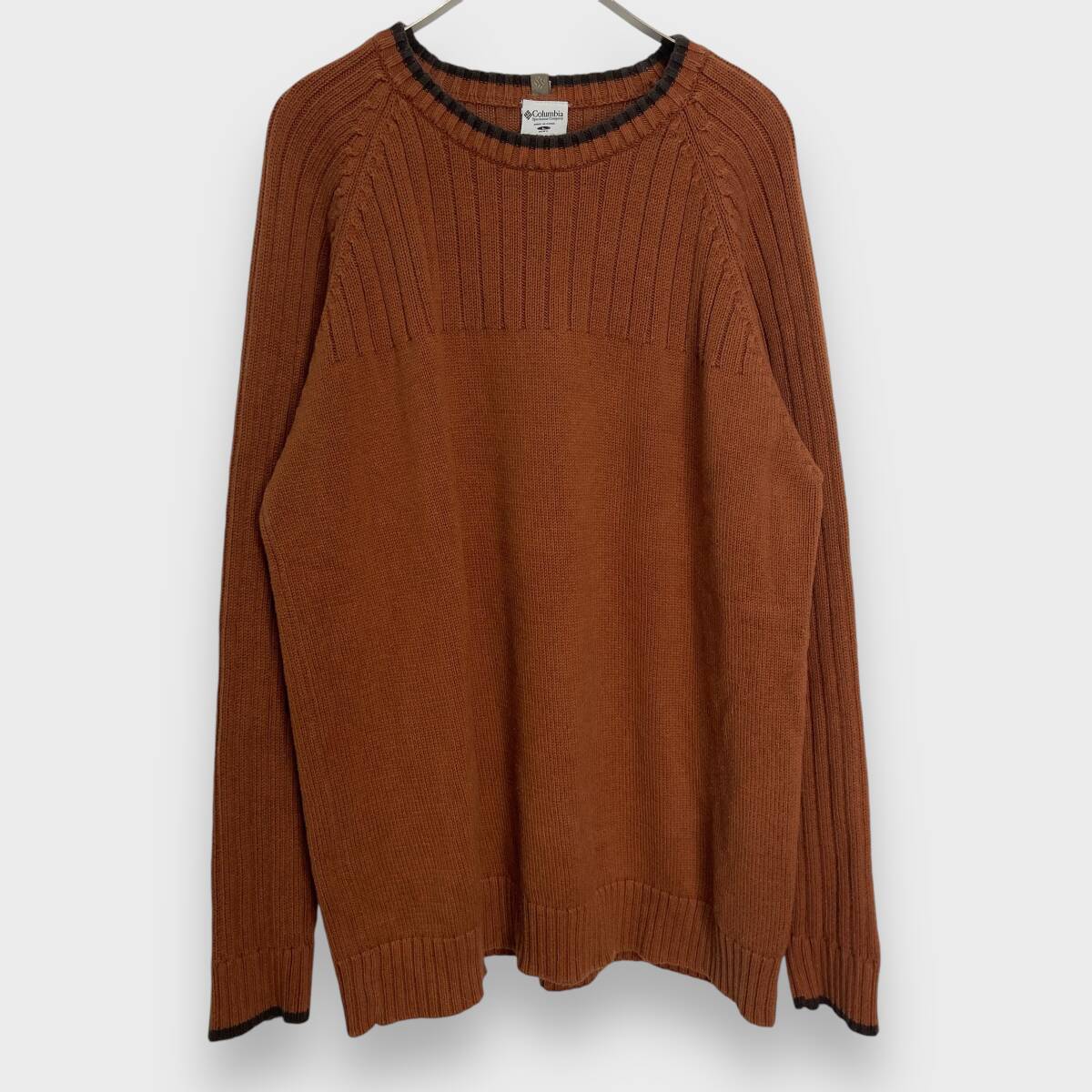 - 送料無料☆Columbia☆無地コットンニットセーター☆ヨーク袖リブ編み☆L☆ダークオレンジ系☆アウトドア☆I24M
