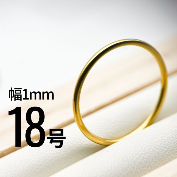 - J013-2 ステンレス1mm甲丸リング ゴールドカラー 18号