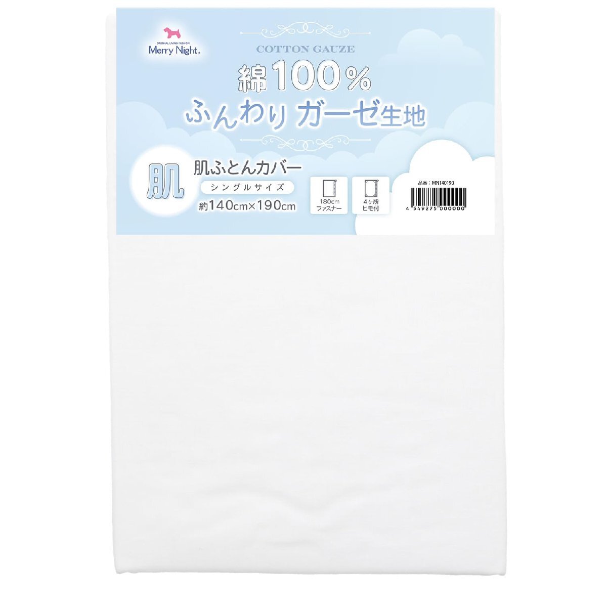 > メリーナイト 肌布団カバー ガーゼ ホワイト シングル 約140×190cm 肌布団 キルトケット 綿100% 軽量 通気性 ふんわりやさしい肌