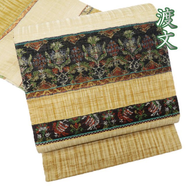 > 【FINAL PRICE】 特選 袋帯 未使用 正絹 紬 カジュアル お太鼓柄 京都西陣 渡文 さざ波 すくい織り 金通し 白茶色 多色 きもの北條 A899-17