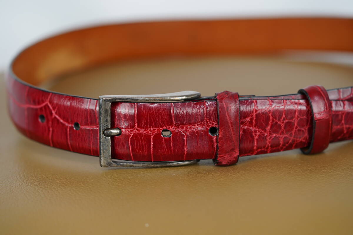 - 「 ANDREA D'AMICO / アンドレア・ダミコ 」アメリカンアリゲーター 赤 レッド ワニ クロコレザー ベルト ファッション小物
