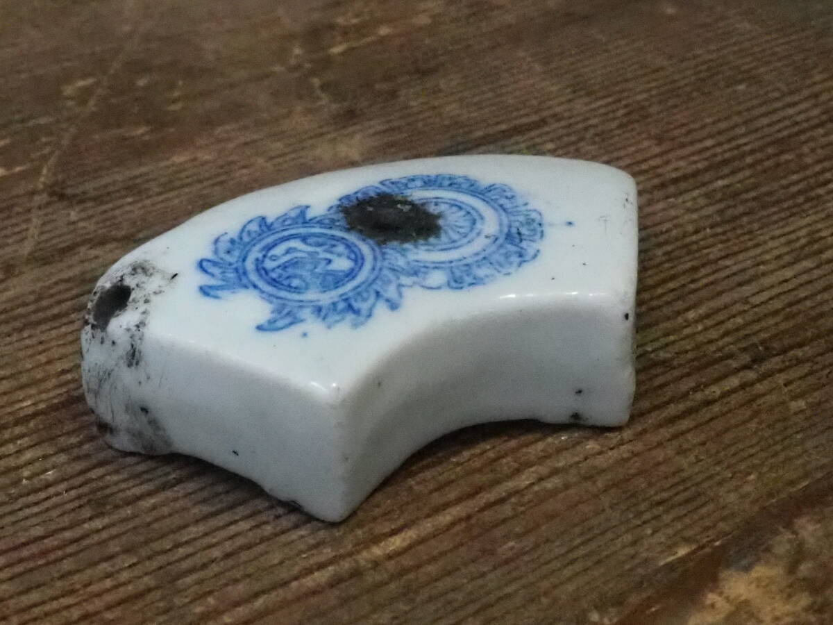 - 【染付の扇面水滴】書道印判白磁陶器インテリア万年筆インダストリアル掛硯インク瓶ドライフラワー古道具アンティーク文具