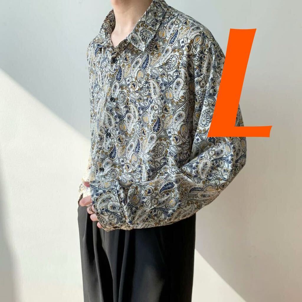 > シャツ ビッグシルエット 長袖 アウター ペイズリー トップス メンズ レディース オーバーサイズ ドレスシャツ トレンド 絶賛 好評 L