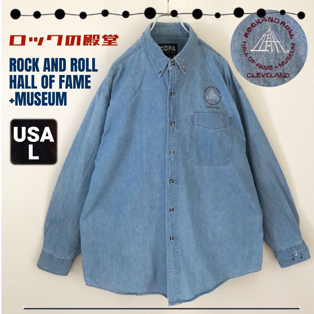 - ロックの殿堂/Rock and Roll Hall of Fame★刺繍ロゴ★デニムシャツ★ボタンダウン/長袖★COPA BANANA★USAメンズL