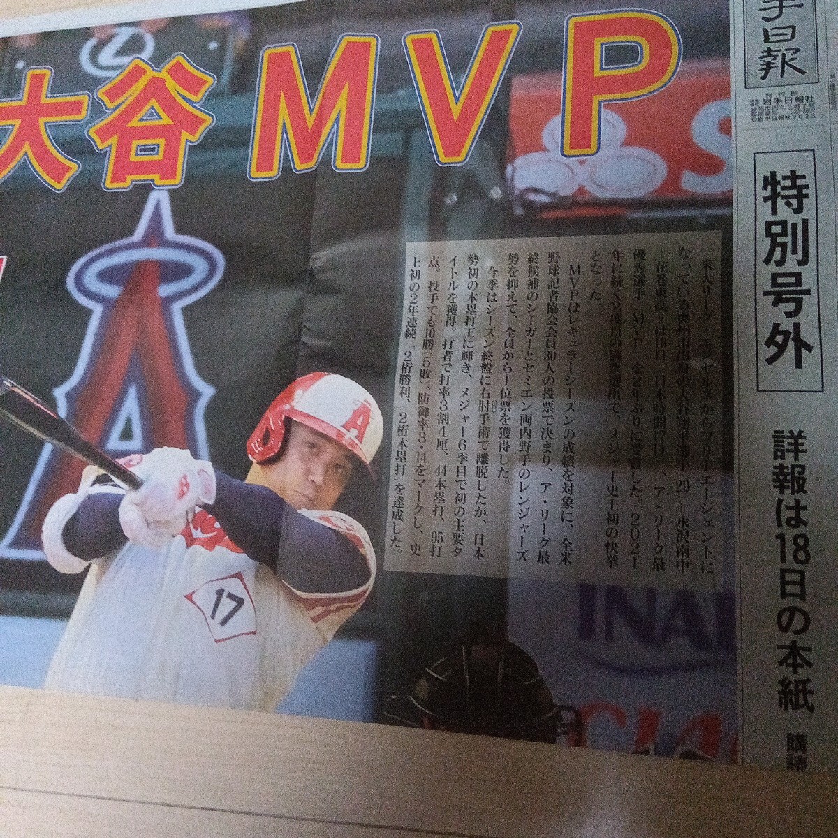 - 大谷翔平 特別号外2度のMVP 2023.11.17岩手日報