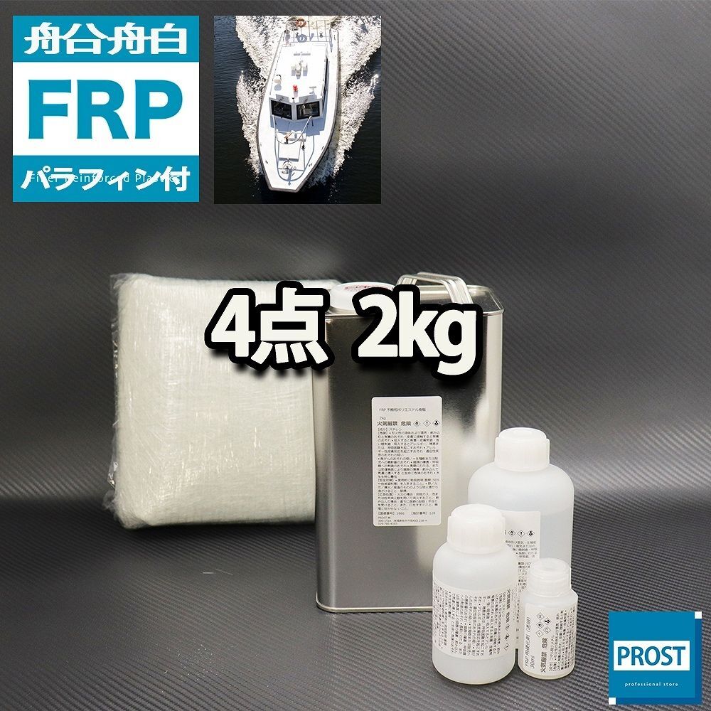 - 船・ボート専用 FRP補修4点キット 樹脂2kg ノンパラフィン(パラフィン付き) 硬化剤 ガラスマット アセトン付 Z25