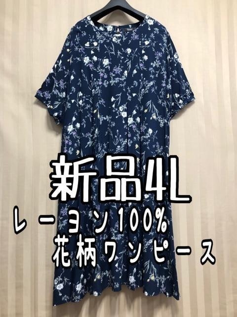 - 新品☆4L♪紺系花柄♪タックデザインおしゃれワンピース♪☆x416