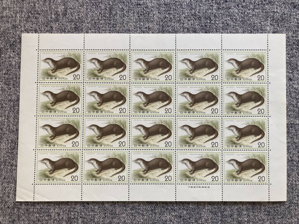 > ★未使用 自然保護シリーズ ニホンカワウソ カワウソ 1974年 昭和49年 切手シート 20円 20枚 日本郵便