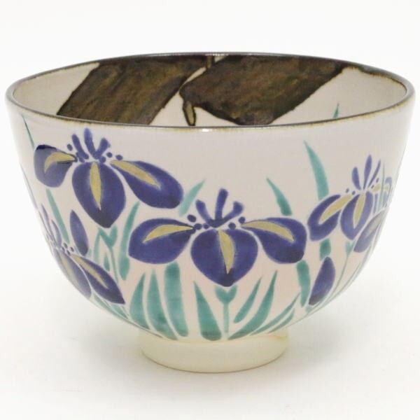 - 茶道具 抹茶茶碗 半七写 八ッ橋 山川敦司作 泉涌寺窯 八橋 八ツ橋 八つ橋 菖蒲 しょうぶ 半七写し 茶道