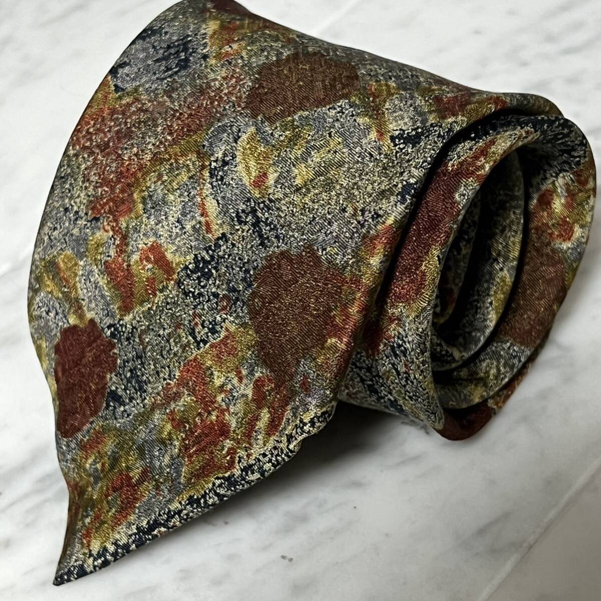 - 【未使用に近い】 999円~ NICOLE ネクタイ ネイビー ブラウン系 マルチカラー アート柄 (GB5)