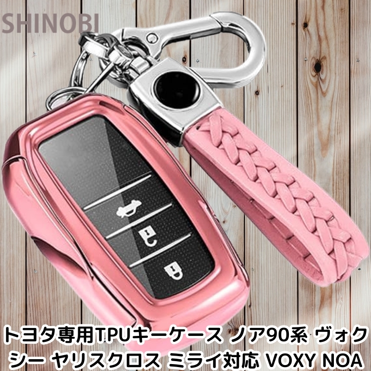 - トヨタ 互換専 TPU製 スマートキーケース ノア90系 ヴォクシー ヤリスクロス ミライ対応 VOXY NOA キーホルダー付き ピンク