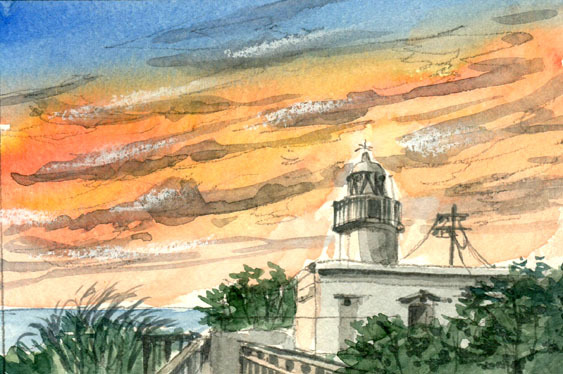 - 〇第8858号/夕暮れの城ケ島灯台/神奈川県三浦市/田中千尋(四季水彩)画 /プレゼント付き