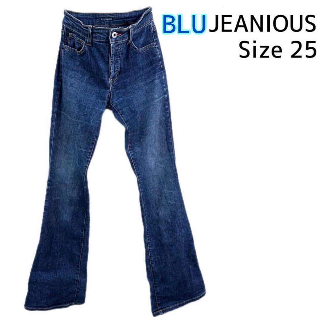 - BLUJEANIOS ブルージーニアス ペーパーデニム ブーツカット デニムパンツ ストレッチデニム ジーパン 25 ブルー インディゴ アメリカ製
