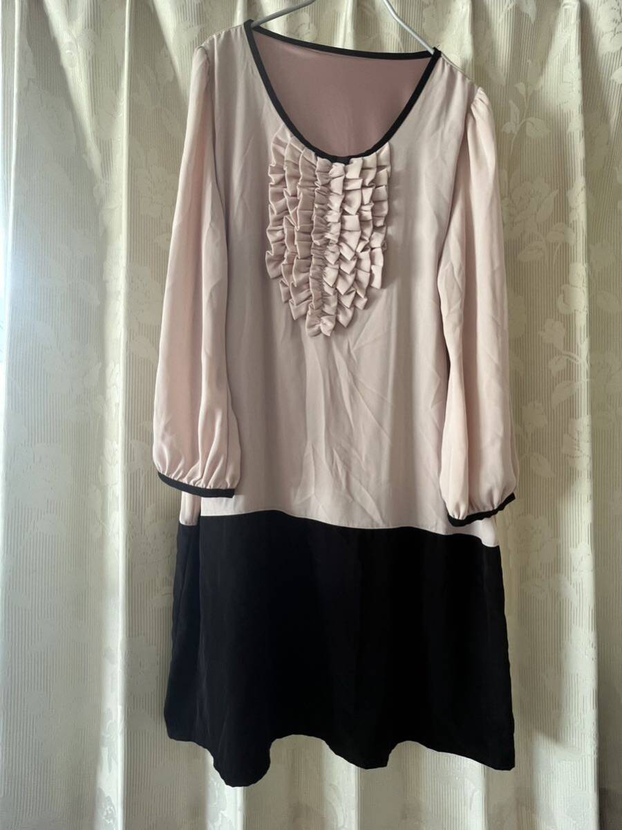 - 送料無料 アンドラブ &LOVE タグ無し 未使用 フリルワンピース チュニックLL バイカラー ピンク 黒 qvc リボン りぼん
