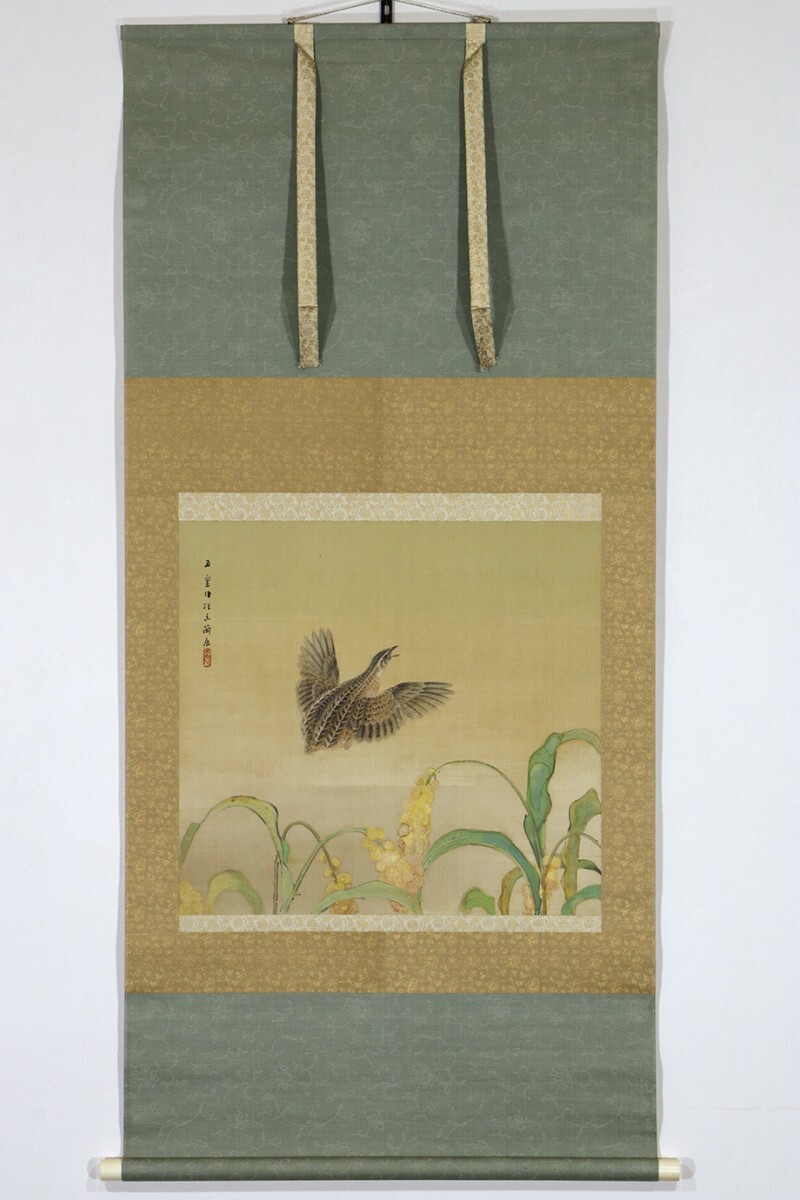 - 【真作】掛軸「西村五雲 粟鶉」絵画 共箱 二重箱 日本画家 岸竹堂・竹内栖鳳門下 動物画
