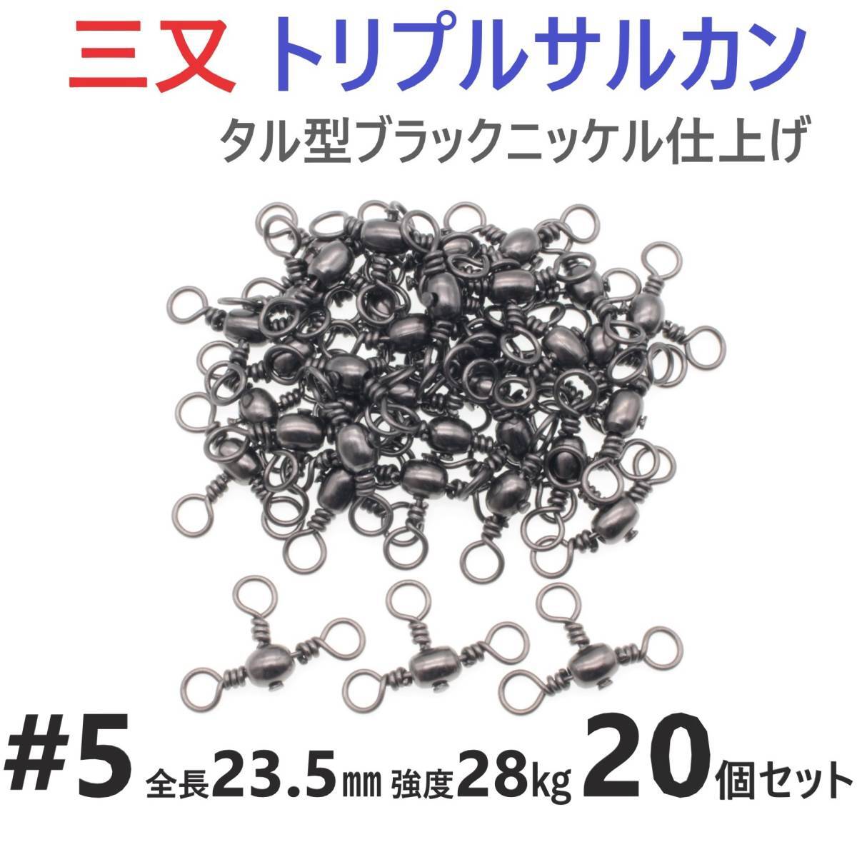 > 【送料150円】三又サルカン トリプルサルカン #5 全長23.5㎜ 強度28㎏ 20個セット 胴突き仕掛け 捨てオモリ仕掛けに 三つ又 強力ヨリモドシ