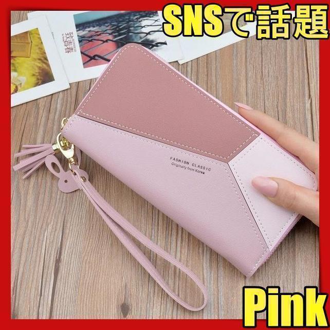 - 長財布 レディース 大容量 ラウンドファスナー 財布 可愛い ウォレット ピンクgtru