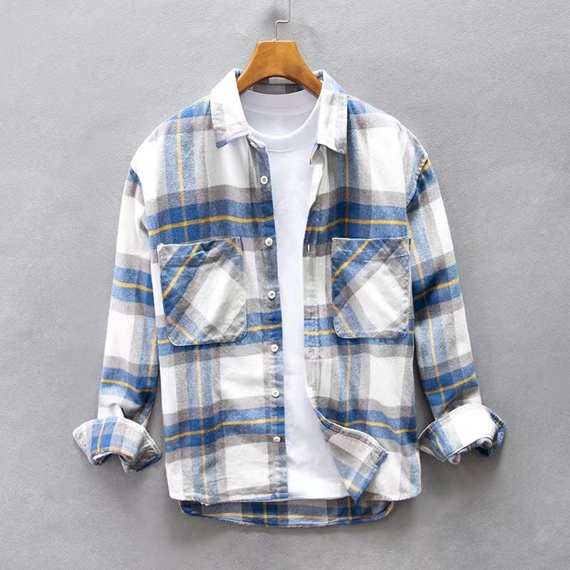 - LRM3981★新品チェックシャツ 長袖シャツ 春秋服開襟 ブルゾン メンズ* トップス カジュアル ショルダードロップ