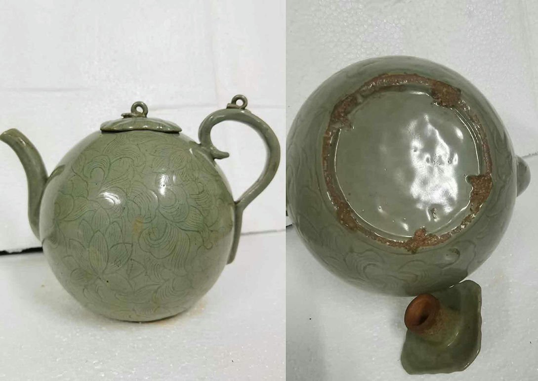 - ▼渡鶴羽▼P905朝鮮珍品旧蔵 朝鮮美術 高麗磁 朝鮮古陶磁器 古高麗 李朝 高麗青磁茶壺