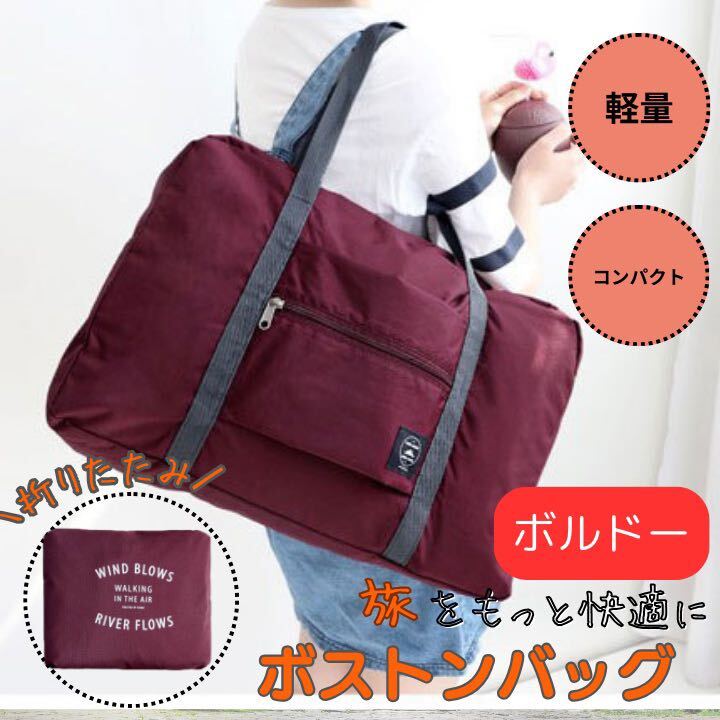 > ボストンバッグ 折りたたみ 軽量 大容量 旅行 えんじ色 キャリーオン 修学旅行 マザーズバッグ エコバッグ 男女兼用 帰省 防災 ボルドー 赤