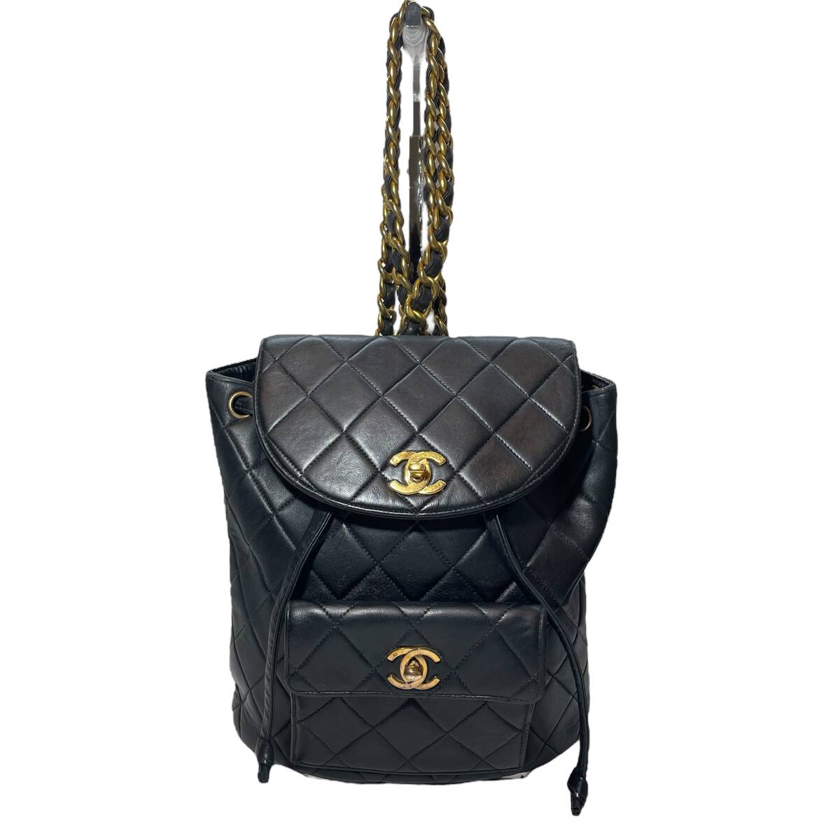 - シャネル マトラッセ リュックサック バックパック ラムスキン ブラック ゴールド金具 ヴィンテージ ターンロック金具 チェーン CHANEL