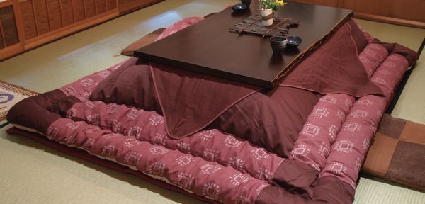 - 長方形こたつ布団厚掛け敷きセット 120巾コタツ用布団セット ざくろ染め サロン付き
