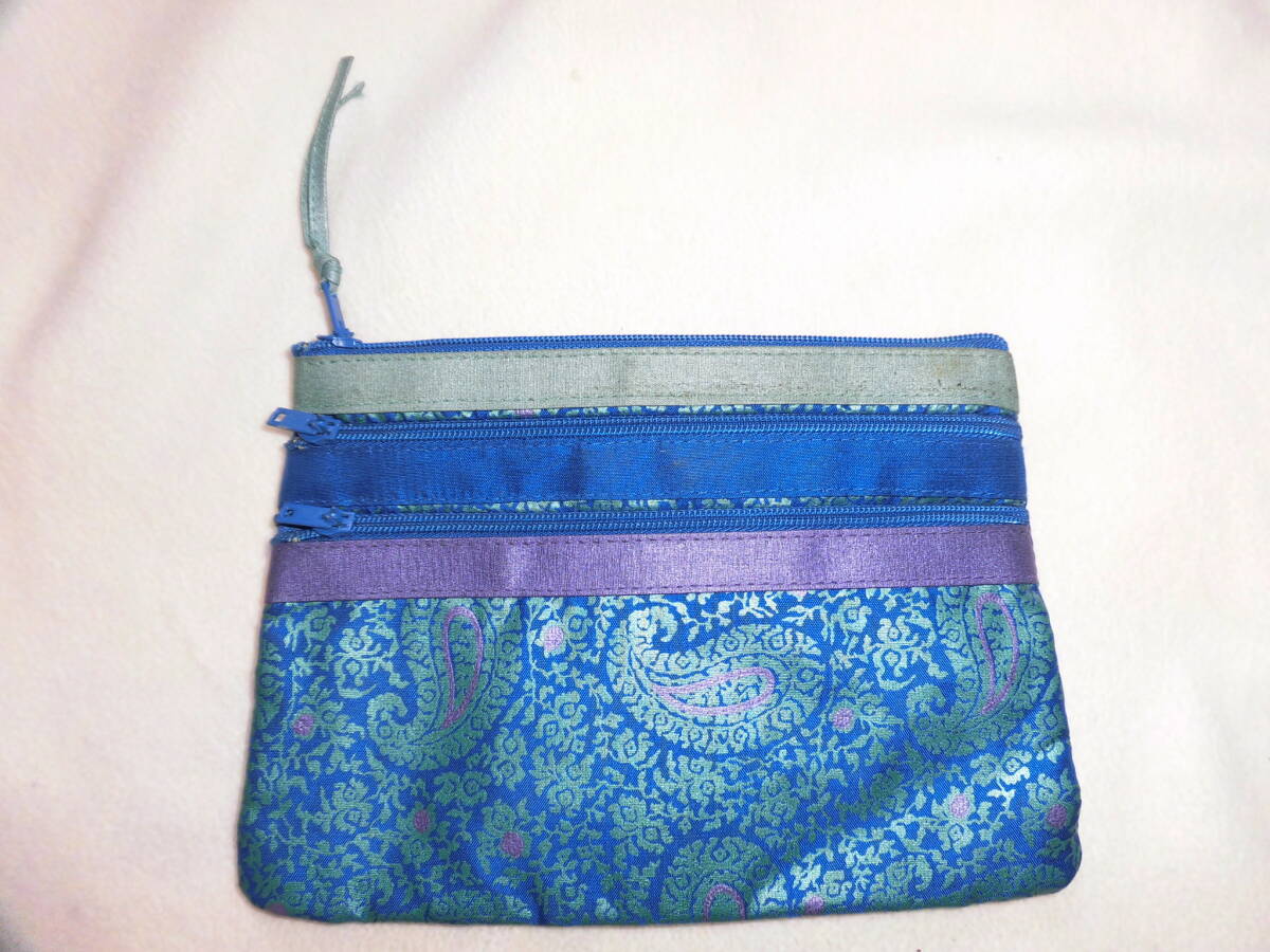 - JIM THOMPSON ジム トンプソン 3段 ポーチ 青 ペイズリー