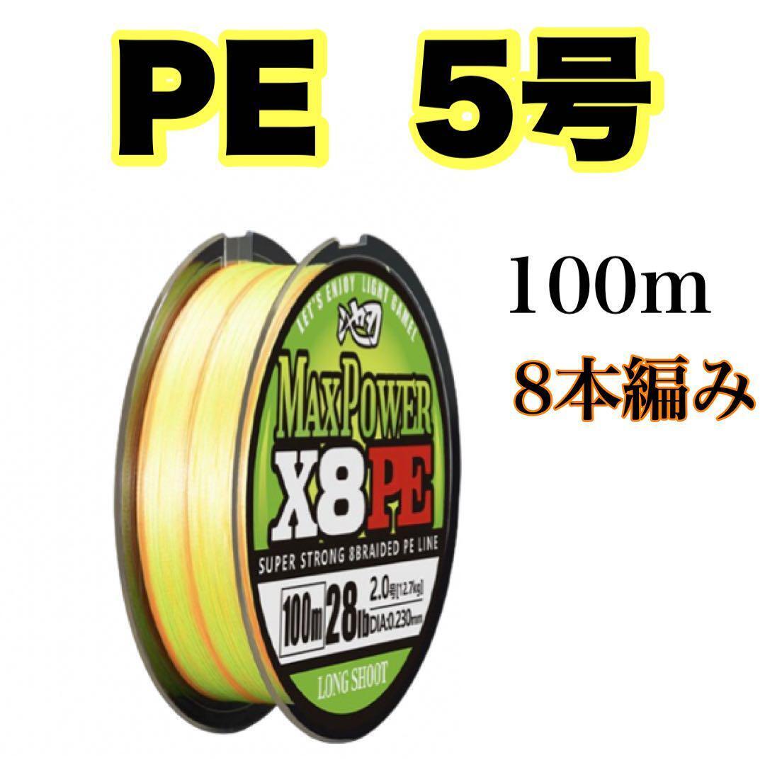 - PEライン 5号 100m 8本編 イエロー オレンジ X8 8本撚り