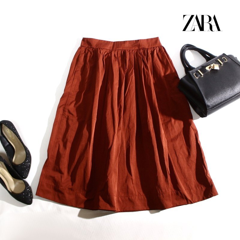 - 美品 ZARA woman ザラ ウーマン オールシーズン 人気 ふんわり ロング丈 ミディ ギャザースカート S 赤系 ブラウン お洒落