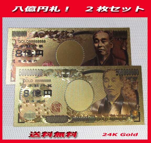 - 超豪華!キラキラ金箔8億円!2枚セット! 金運財運UP !! 金運アップ!!新品即決!送料無料です