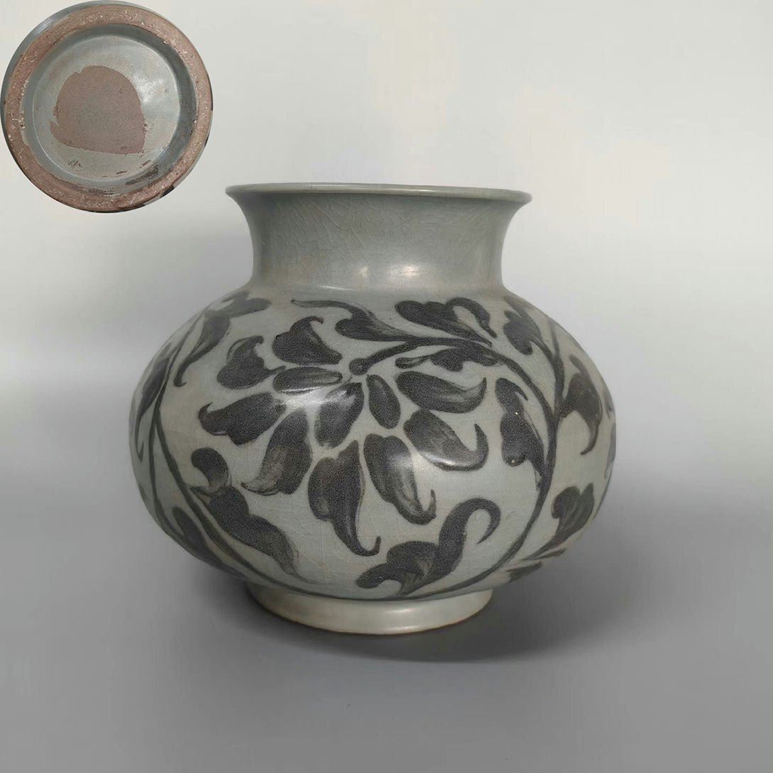 - ▼渡鶴羽▼C373朝鮮珍品旧蔵 朝鮮美術 高麗磁 朝鮮古陶磁器 古高麗 李朝 高麗青磁罐