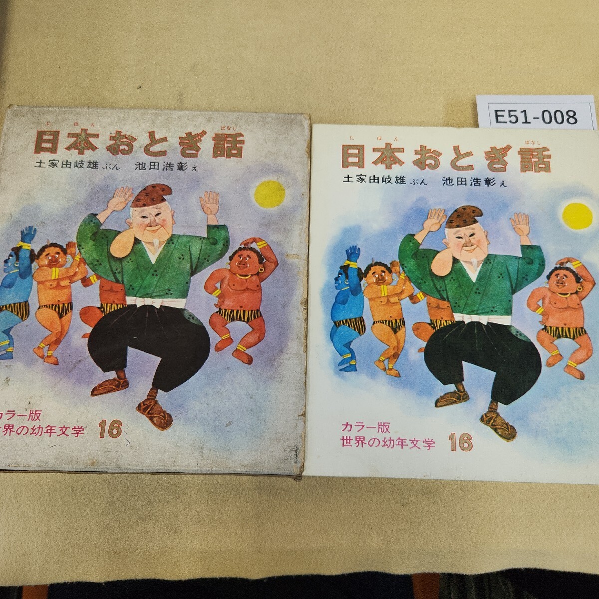 > E51-008 日本おとぎ話 16 カラー版 幼年文学 日本説話集 土家由岐雄 ケース劣化 書き込み有 天地小口に汚れ 表紙に傷 シミ汚れ複数有