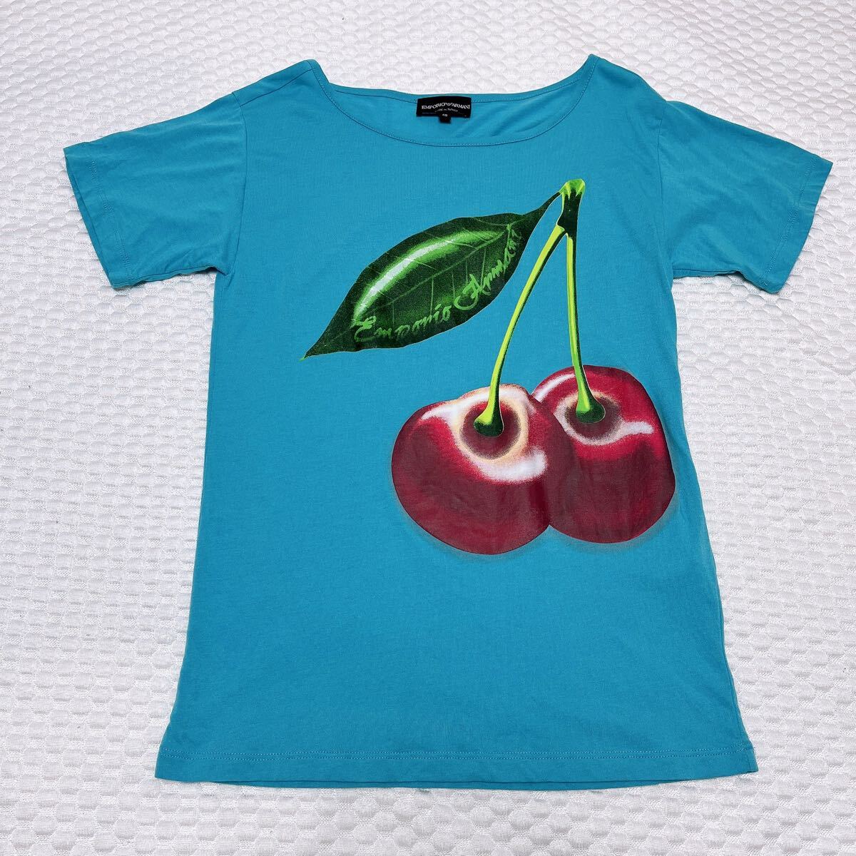 - 即決★送料込 ジョルジオアルマーニ GIORGIO ARMANI レディース 半袖 Tシャツ 水色 チェリー柄 サイズ40 超美品 ブルー トップス
