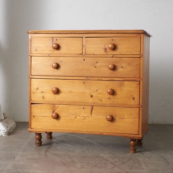- IZ78295N★英国 アンティーク オールドパイン 無垢材 4段 5杯 チェスト 引き出し ドロワー 洋タンス ナチュラル 収納 イギリス カントリー