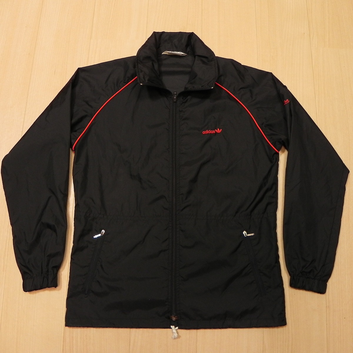 > 80s ヴィンテージ adidas アディダス ADS-256 ナイロンジャケット M 黒 ブラック デサント レトロ 古着 当時物 ★b