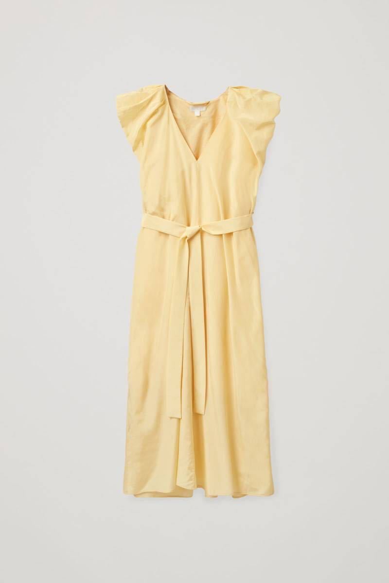 - 【美品】北欧ブランド コス ★シルク100ボディ 裏地コットン100 スリーブレスパフショルダー シフトギャザーワンピース★EU38 9-11号