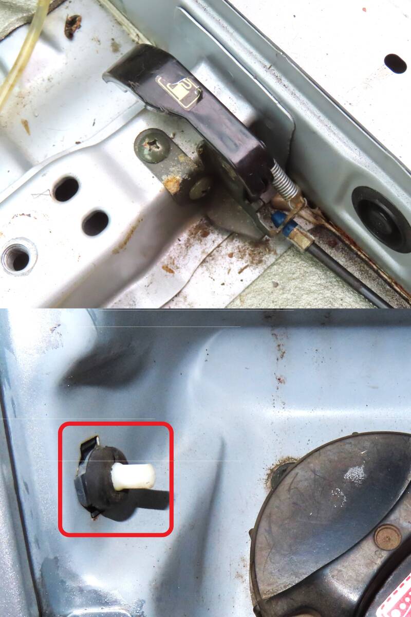 - H11 GF-JB23W 前期 1型?2型? ジムニー Jimny 4WD 5F MT K6A 純正 フューエルリッド 給油口蓋 開閉レバー ワイヤー Assy / 124625km