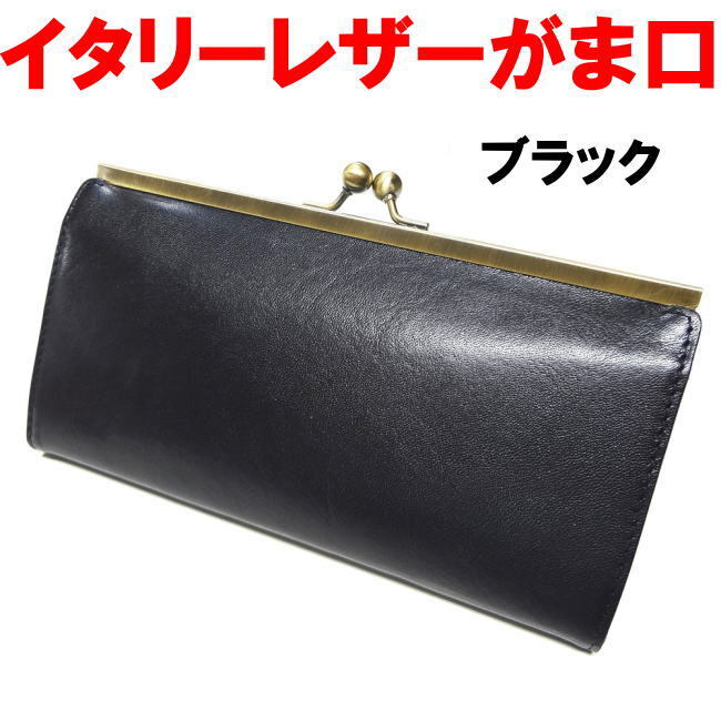 - ブラック イタリーレザー がま口 長財布 25 ロングウォレット