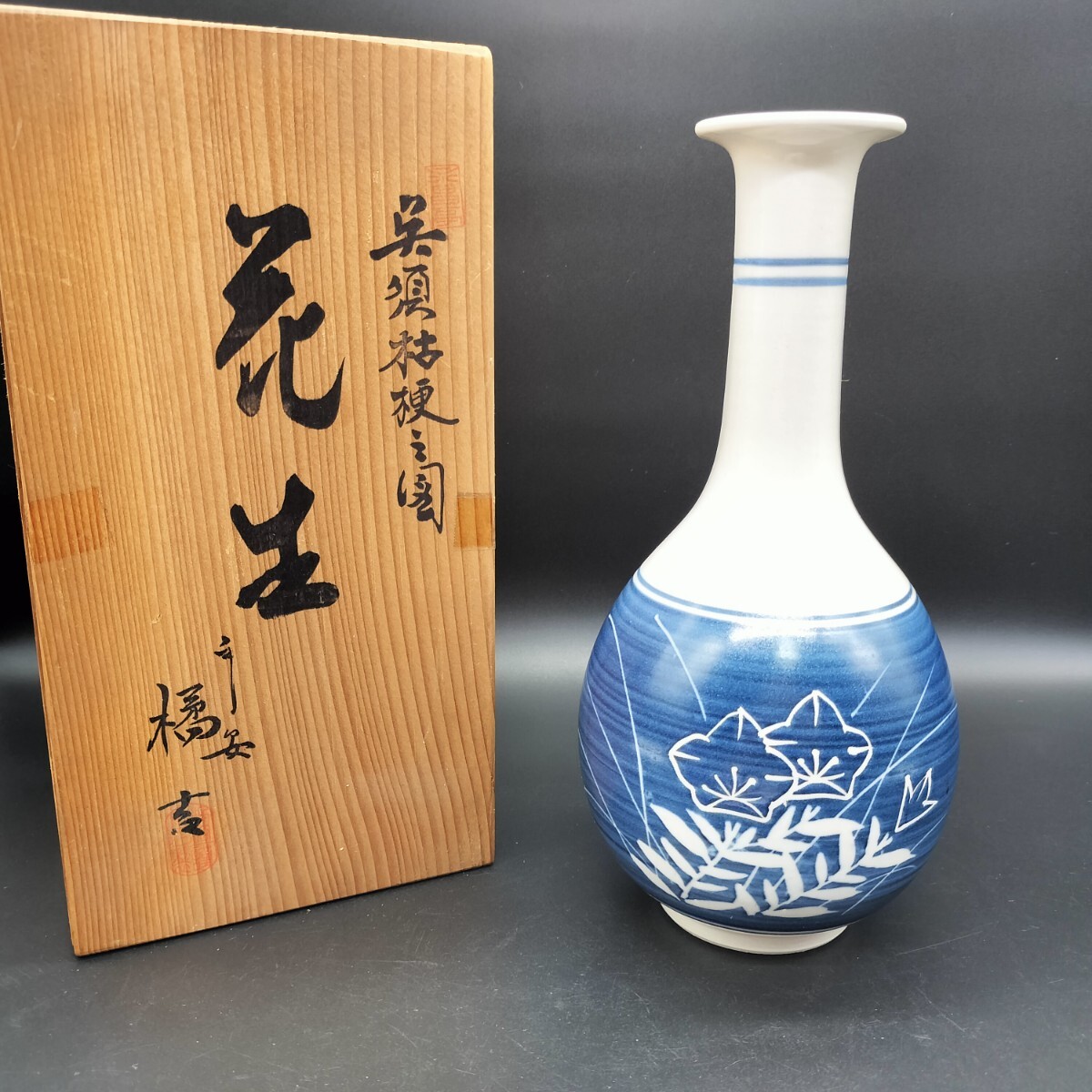 - 橘吉 花生 呉須枯梗 花入 花瓶 一輪挿し 花器 たち吉 ス9